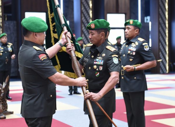 Kepala Staf Angkatan Darat (Kasad) Jenderal TNI Dr. Dudung Abdurachman memimpin serah terima jabatan dua pejabat Pangdam di Aula Jenderal Besar A.H Nasution, Mabesad , Jakarta, Jumat (24/3/2023).
