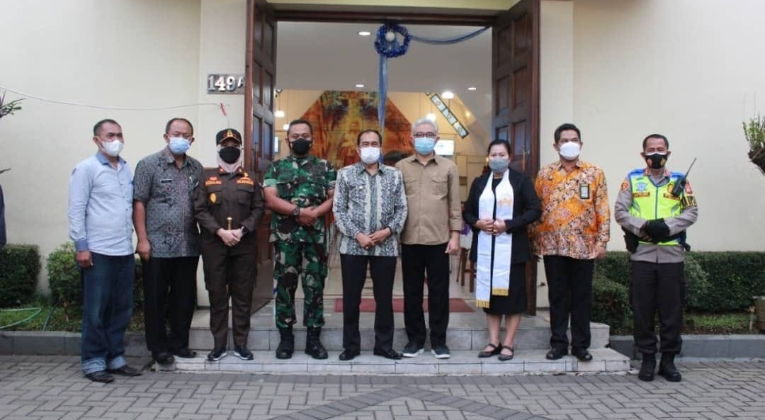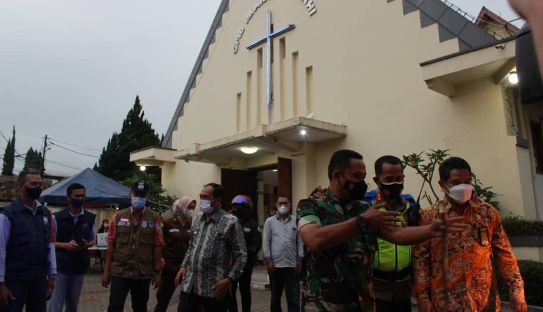 Guna memastikan pelaksanaan pengamanan jelang ibadah misa malam Natal 2021, Dandim 0609/Cimahi Letkol Inf Hary Novana Andriyas, S.Sos bersama jajaran Forkompimda Cimahi melaksanakan serangkaian pemantauan dengan menggelar patroli gabungan ke beberapa Gereja dan Pos Pam Nataru di wilayah Kota Cimahi, Jum’at (24/12/21).