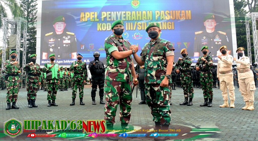 Usai penyerahan risalah Sertijab, dilanjutkan upacara penyerahan pasukan dari Mayjen TNI Agus Subiyanto dan diterima oleh Pangdam III/Slw Mayjen TNI Kunto Arief Wibowo ditandai dengan pembacaan naskah Serah Terima Penyerahan Pasukan.